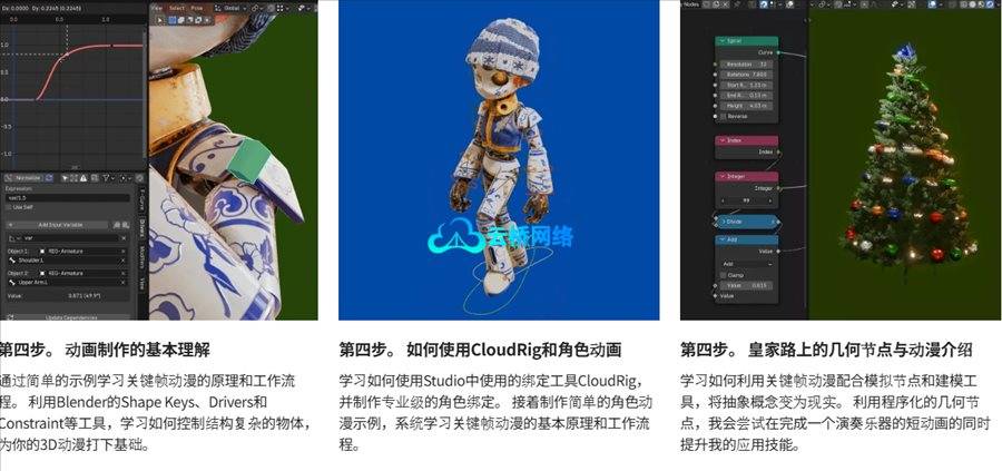 Character animation completed entirely in Blender! Learn the basic principles and essential skills of Geometry Nodes, mastering their application in animation. Understand both traditional animation production methods and procedural methods utilizing Geometry Nodes, and complete a cinematic short animation through examples.