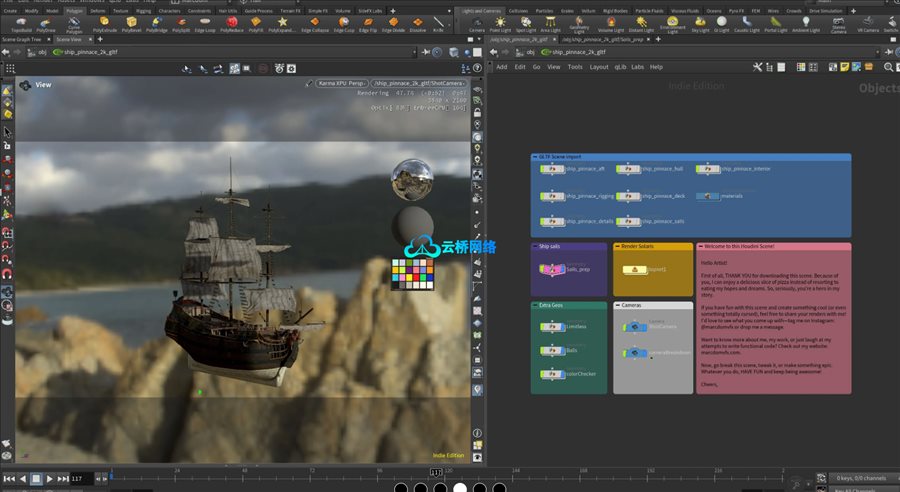 The Houdini Pirate Sails in Vellum scene is finally here, ready for download! 🌬️⚓ It’s a step-by-step, super procedural scene designed to give you realistic pirate ship vibes—wild winds and all. Sure, it’s a proof of concept (no Oscar-winning waves yet), but it’s packed with tips to make your sails flutter like a true captain’s dream. HIP文件·HoudiniVellum程序化海盗船