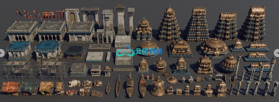 这是一款名为“CHOLA NADU”的印度风格模型套件,专为Blender设计,内含200多个低多边形3D模型及附材质的Blender文件,适合所有水平的用户快速构建场景。需要注意的是,此套件仅包含基础模型,宣传图中出现的部分角色、雕像和植被等并不在内。该套件使用单张纹理贴图制作,非常适合概念设计和远景渲染,但在特写镜头下可能会损失细节。开发者强调,为保证最佳效果,建议仅在Blender中使用,若需移植到其他软件,则需自行调整纹理、UV和拓扑结构。